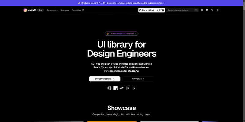 面向前端开发人员的 Magic UI 库拥有 50 多个使用 React、Typescript、Tailwind CSS 和 Framer Motion 构建的免费开源动画组件。