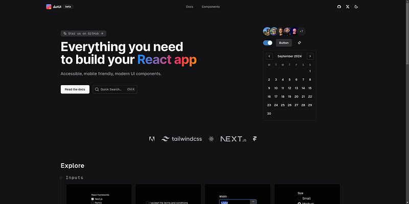 Dot UI 也是开源可重用组件的集合,与其他库类似。它提供了可访问、适合移动设备的现代 UI 组件,让你的应用在各种设备上都能有出色的表现。