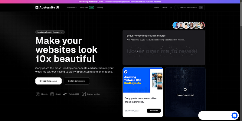 最近越来越受欢迎。它的每个组件都经过精美设计,使用 React.js、Next.js 和 TypeScript 构建,并结合了 Tailwind CSS 和 Framer Motion。