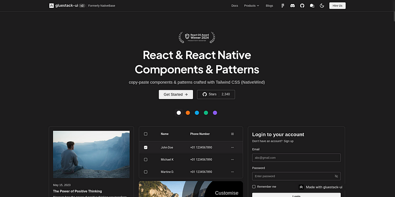 Gluestack UI 带有 30 多个设计精美的组件,采用 Tailwind CSS(NativeWind)。