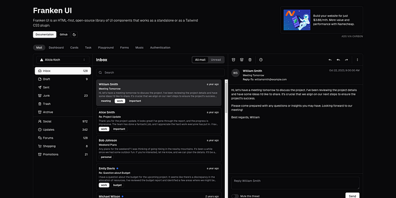 作为一个新库,Franken UI 包含 50 多个 UI 组件,是一个开源库。